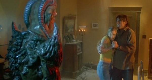 Andrew Divoff is awesome as the Djinn and his alter ego, Nathaniel Demarest. He really looks like he’s enjoying chewing the scenery and I enjoyed watching him chew. Our heroine, Tammy Lauren, tries but her delivery at the moments that matter aren’t all that convincing. And maybe it’s just me, but every time she screams, she looks like one of the aliens from “They Live.” Maybe that’s another wink at horror fans? There are many, I’ve already name dropped Robert Englund (Nightmare on Elm Street), Reggie Bannister (Phantasm) and Ted Raimi (Evil Dead 2) but there’s more! The most popular Jason Voorhees of them all, Kane Hodder, makes an appearance as a guard, Candyman himself, Tony Todd, shows up as a bouncer and even the Tall Man, Angus Scrimm (Phantasm), opens the movie as the narrator! If that isn’t enough, this time around, I actually caught the statue of Pazuzu from “The Exorcist.” Most of these people get killed off too (aside from the narrator and statue of course) which is a wink from the makers of the movie telling us that the Wishmaster is better than every other horror icon.