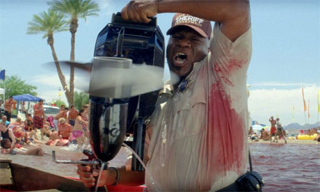 The movie has a nice bit of casting, even if it’s mostly just cameos by the bigger names.  They really could’ve casted anyone because the acting is definitely taking a backseat to everything else.  Elisabeth Shue does well enough in her role as the sheriff.  Jerry O’Connell seems to have had a blast as the dirty smut peddler.  Ving Rhames plays another bad ass cop in a small role.  Christopher Lloyd plays another crazy doctor and even Richard Dreyfuss shows up briefly to make the obvious Jaws connection to Piranha (the original Piranha being one of the better rip offs of Jaws.)  The cast provides just enough to avoid the movie becoming really campy and to get some cred from genre nerds such as myself.