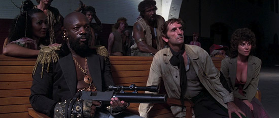 After crime rates hit an all time high of 400% in 1988, in order to maintain peace and justice, the island of Manhattan in New York is transformed into a walled in maximum security prison in 1997. Any criminal found guilty of their crimes are ex-communicated to the island with no chance of parole. The United States is in a war with Russia and China and in order to stop it, the President (Pleasance) is on his way to a peace summit in Hartford (really?) but his plane is taken over by radicals who crash the plane in New York. He’s taken hostage by The Duke of New York (Hayes) and his large gang/army who plan on exchanging the President for their freedom.