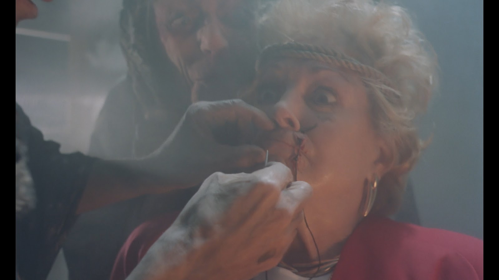 The film is not only violent, but cruel at times to boot. The mother of the family becomes one of the first victims when she is whisked away via magical portal to get her mouth slowly and painfully stitched together and then she is placed in the chimney where the other characters eventually start a fire in the fireplace and unknowingly cook her alive. Super weird, really mean. The witch later needs the blood of a virgin to help with her ritual so she sends one of her disgusting lackeys to attack the daughter in her sleep and there’s an uncomfortable rape scene.