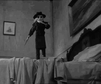 Taking place not long after the events of the original film, a group of paranormal researchers descend upon the Bodega Bay Inn where they intend to look into the insane ramblings of survivor Alex Whitaker. Looking into the inn’s past they learn some odd facts about the place and it’s former owner. While the medium on the team gets the initial heebie jeebies, the rest of the team of straight thinkers stick around until one of them is drilled in the head by a puppet with a drill on its head. They take the puppet out and learn about its mechanical body but they aren’t sure how it moves on its own.