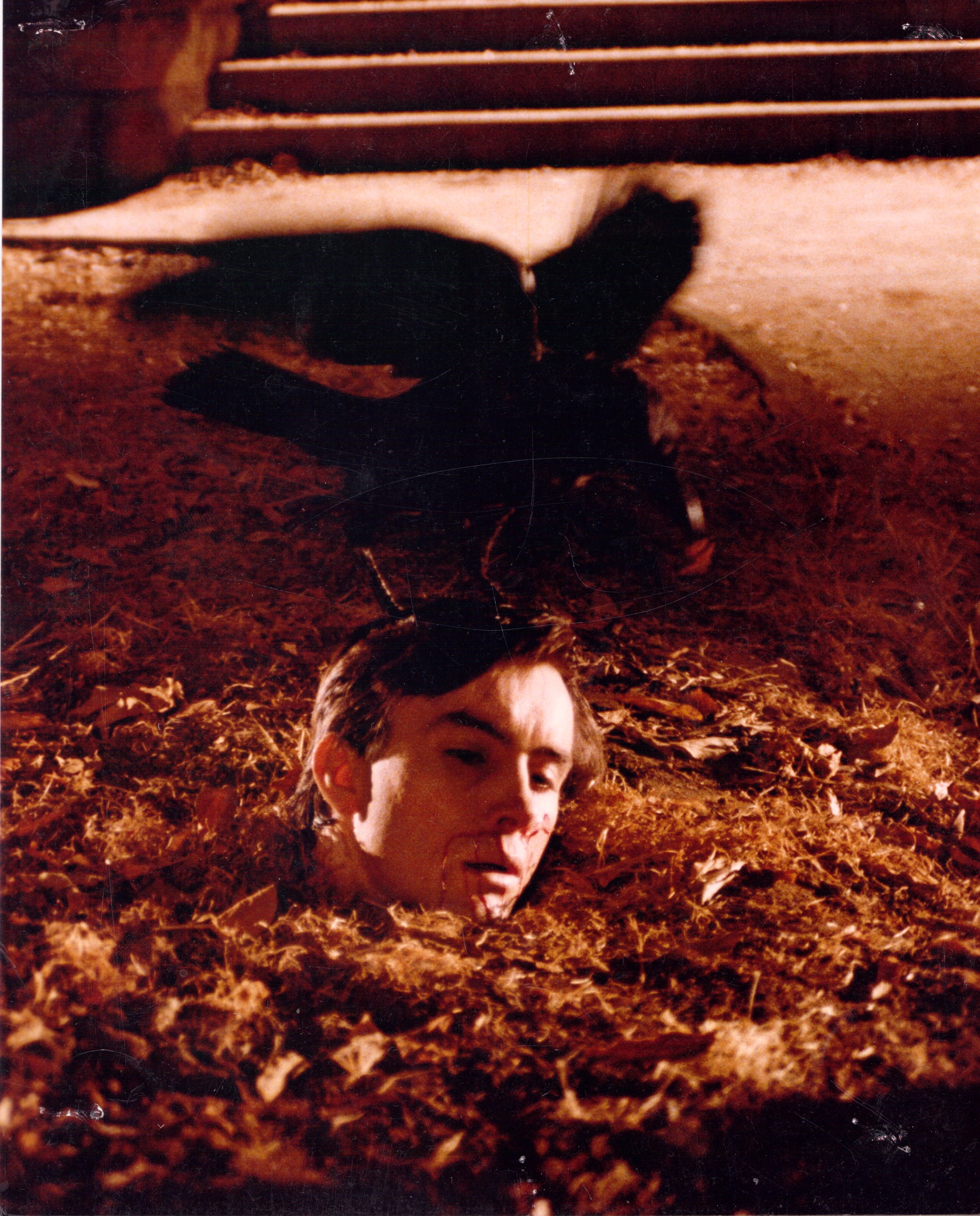 Conrad Radzoff (Mayne)is a world renown classical actor who has primarily made his living in the horror genre, much like Vincent Price and Christopher Lee. In real life, Radzoff is a vain, arrogant, narcissistic douchenozzle as evidenced by the opening scene where he’s being yelled at by a director of a commercial he’s in. During a break, Radzoff grabs his cane and gently nudges the director over the building’s second story balcony to his death. Radzoff don’t fuck around. Years later, a few members of a university film class (one of the students is a pre-Re-Animator Jeffrey Combs) who especially love horror films invite Radzoff to a screening of one of his films and aQ&A which he happily accepts just to hear the adoration from his fans. That feeling is short lived when he keels over dead from a heart attack. Well that’s a career.