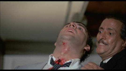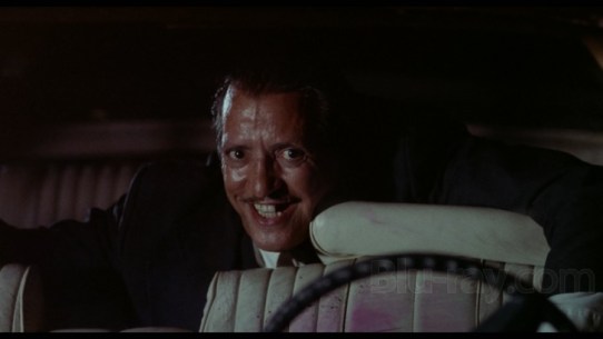 The film opens with a woman’s car breaking down so she hitches a ride with a sketchy biker who unsurprisingly tries to rape her for services rendered. She escapes immediate harm and catches another ride with a stranger in his car. The next scene has her on a mortician’s slab with a slit throat. The next day, the small town’s mayor is finishing up a late meeting and sends his assistant home but she’s stalked by a figure in the shadows who attacks her through a window…after the shower scene of course.